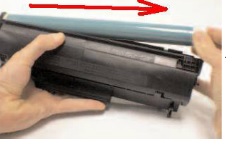 Bước 2: Bạn tháo trống ra khỏi hộp mực và vệ sinh trống như hình dước
