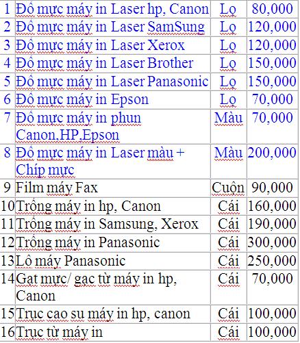 Báo giá mực in, linh kiện máy in của Phương Đông